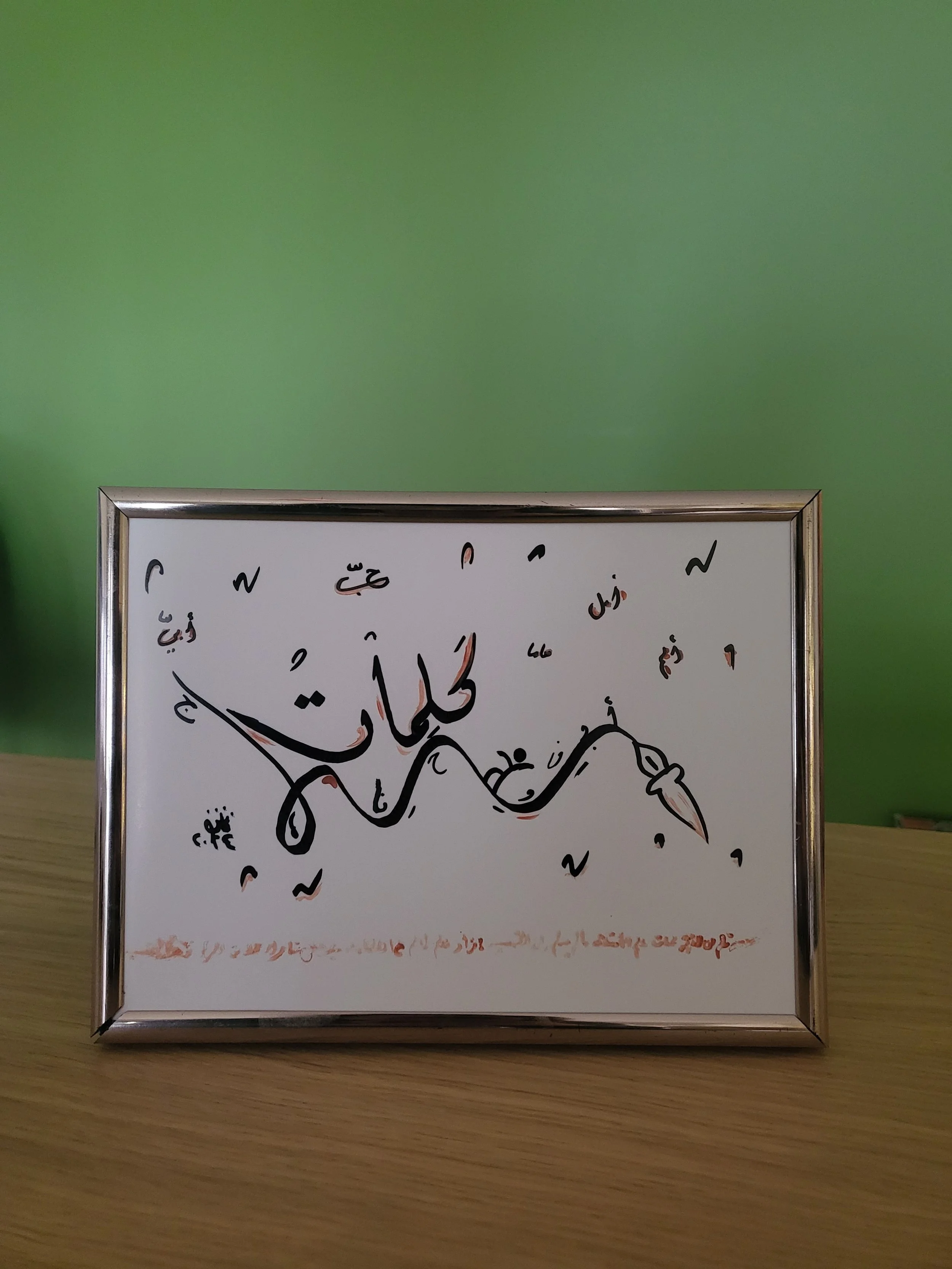 Pour cette calligraphie, Faten a choisi les mots " Amal " et " Alam " 💫